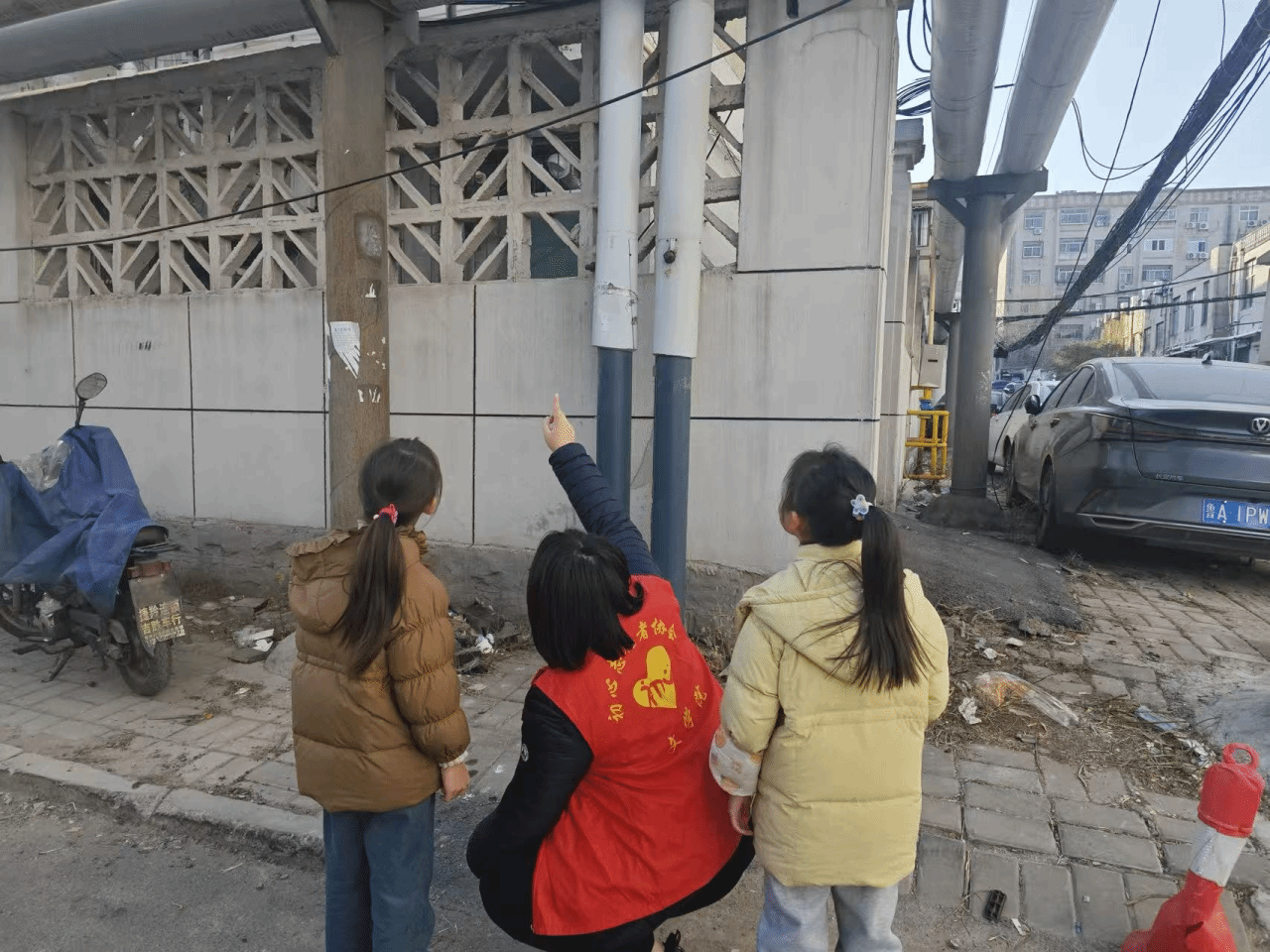 理论结合实践,知识走出课堂。在随后的户外科普环节,志愿者们带领孩子们深入社区街巷,在真实的社区环境中进行现场教学。面对生活中的各类管道设施,志愿者现场指出不同管道并讲解它们的功能区别、保护标识含义及日常注意事项,引导孩子们主动观察、发现身边可能存在的管道安全隐患。孩子们兴致盎然,认真聆听、踊跃提问,在“行走的课堂”中深化了对管道保护的理解,潜移默化地树立起“守护管道安全,从我做起”的责任意识。