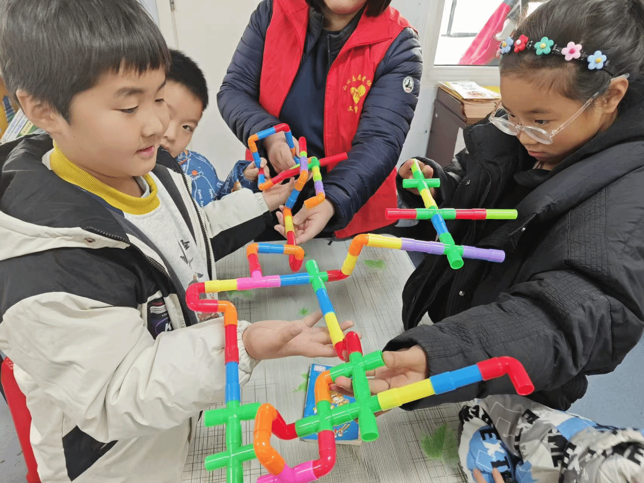 在社区活动室内的趣味课堂上,志愿者们围绕管道保护主题,精心设计了系列互动环节。课堂以角色扮演游戏破冰,孩子们佩戴上“指挥员”“巡检员”“宣传员”等特色头饰,化身“管道安全小卫士”。在志愿者引导下,孩子们动手使用彩色管道积木搭建模型,直观理解管道连接与布局原理。志愿者们通过PPT动画演示、手势互动游戏、知识问答等方式,用通俗易懂的语言,系统讲解了管道安全的重要性、日常维护要点及安全隐患识别技巧,使抽象的安全知识变得形象生动、易于掌握。