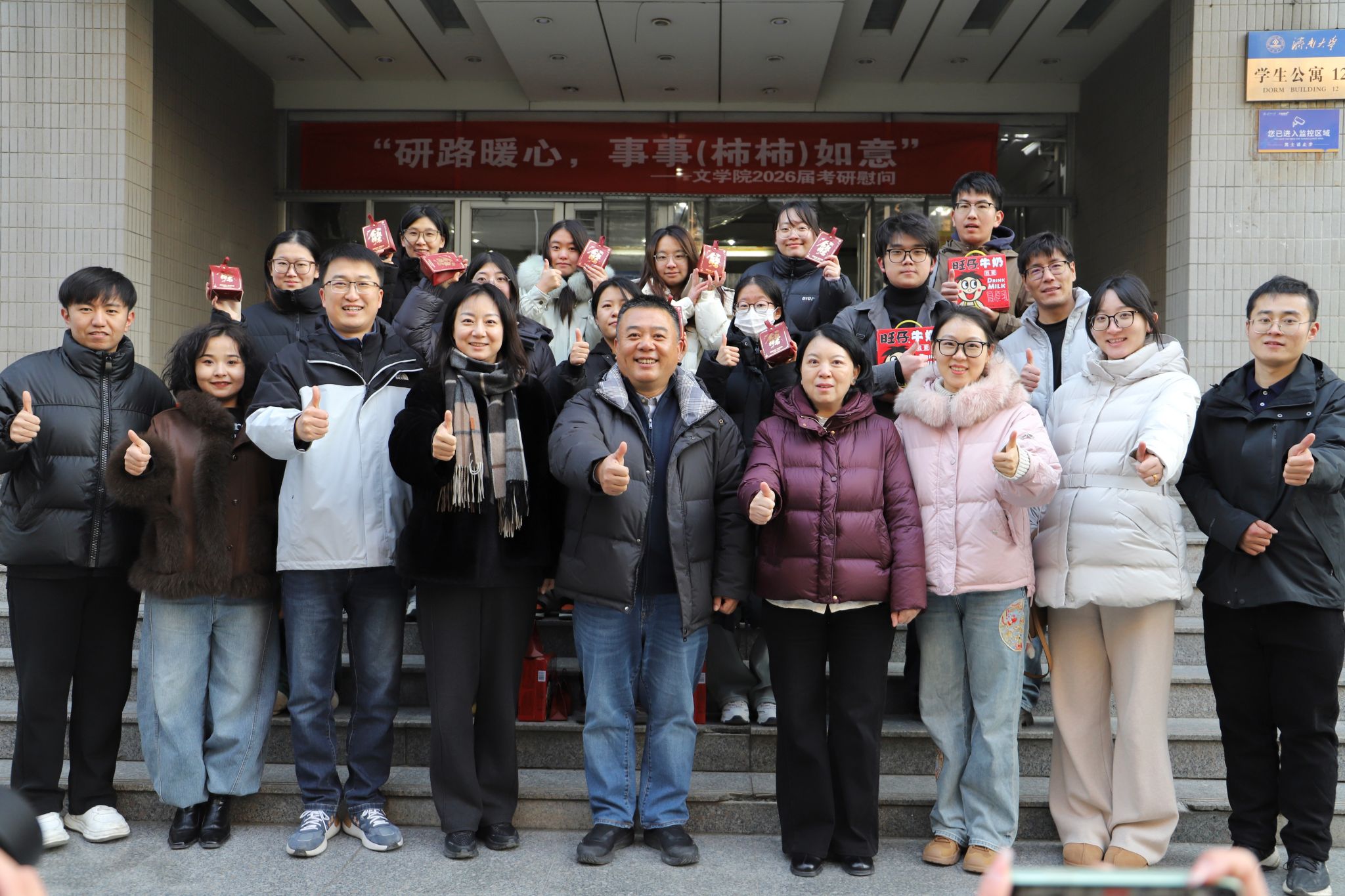 随着2026年全国硕士研究生招生考试进入最后冲刺阶段,为鼓舞考研学子斗志、传递学院深切关怀,12月2日,成人直播 组织开展“研路暖心,事事(柿柿)如意”考研慰问活动,学院党委书记朱海龙、院长范丽敏、党委副书记、副院长潘颖,全体辅导员及2022级学生代表参加。学院老师以殷殷嘱托与匠心好礼,为即将奔赴考场的学子送上真挚问候与暖心礼包。